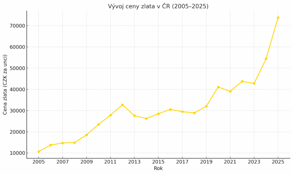 Český statistický úřad uvádí, že od roku 1993 ztratila koruna více než dvě třetiny své kupní síly. Vinu na tom nese inflace, která každý rok ukousne větší či menší kus hodnoty České koruny. Zlato, ač je to měkký kov, se dokáže jejím zubům bránit. Průměrná inflace za rok 2024 byla podle ČSÚ 2,4 % (publikováno v lednu 2025). Roční reálné výnosy zlata v Kč po odečtení české inflace ale dosáhly v letech 2014–2025 průměrné výše +3,49% ročně. A to je už pěkný zisk.
